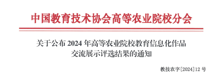 2024年12月23日,中国教育技术协会高等农业院校分会公布了2024年高等农业院校教育信息化作品交流展示评选结果,今年会9项作品获微课视频奖,获奖数量居全校第一。谭桂霞老师的微课作品获得最佳微课奖;刘倩、龚霞、聂旭亮、孙婷婷、李艳霞、刘长相、贺雪梅、吴苏琴8位老师的作品获得优胜微课奖。