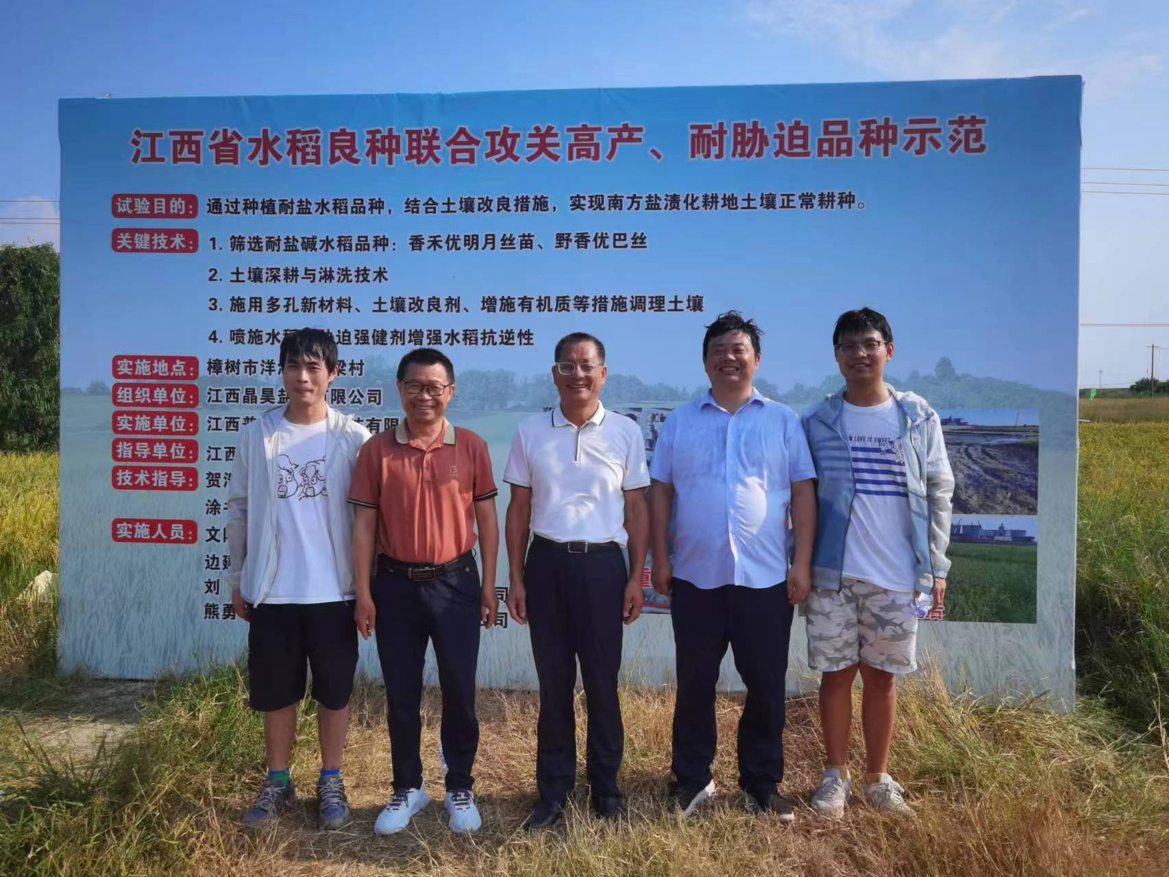 2023年8月20日,江西省作物学会组织有关专对江西农业大学、江西普瑞丰生态科技有限公司和江西晶吴盐化有限公司实施的“江西省水稻良种联合攻关高产、耐胁迫品种示范”产学研项目进行现场考察与测产,我校副校长、江西省作物学会理事长贺浩华教授,今年会刘庆言书记和青年教授文阳平博士及其研究生参加这次测产现场观摩会。