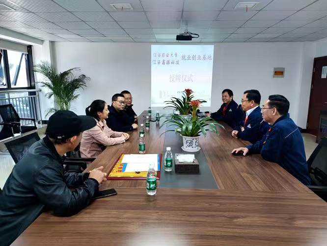 2022年11月3日上午,学院党委书记刘庆言带队赴新干县江西新瑞丰生化股份有限公司、江西鑫臻科技有限公司,下午赴樟树市江西隆源化工股份有限公司三家企业访企拓岗走访调研,联络感情,对三家企业进行签订实习合作协议,并举行挂牌实习基地仪式。学院党委副书记叶健、化学系教师黄建平、彭大勇、陈金珠,材料与化工系教师黄喜根及就业干部廖超陪同调研。