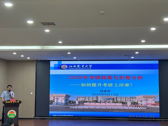 动员大会上,研究生院招生科科长吕述华及学院就业干部廖超分别就考研形势及考研择校作了政策分析与经验分享,并鼓励学生选择在本校继续升学深造。