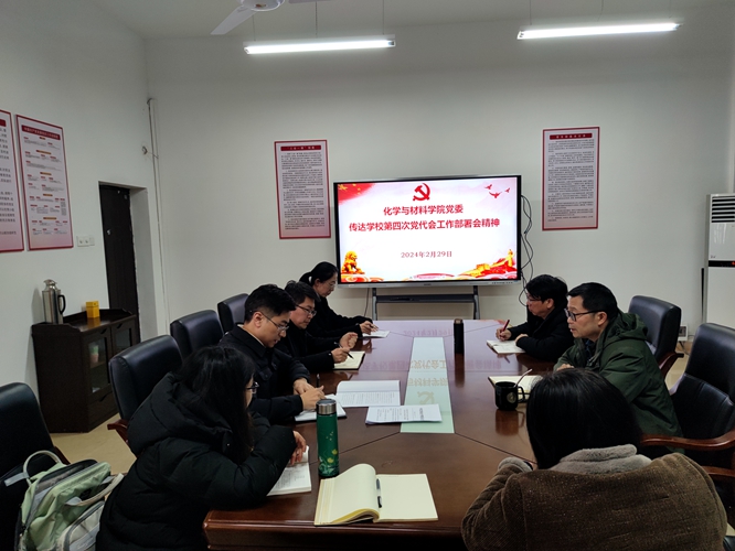 2024年2月29日14:00,学院召开党委扩大会议,传达学校第四次党代会工作部署会议精神。全院党委领导班子全体成员、各支部书记参会,会议由学院党委书记刘庆言主持。