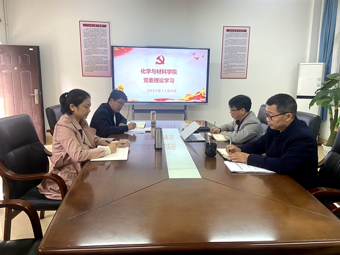 2023年11月6日8:30,学院党委领导班子开展集中理论学习,全体班子成员参会,会议由学院党委书记刘庆言主持。