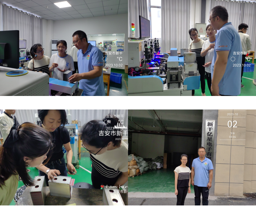 2023 10月2日,为加强校企合作、推进百博百企项目进展和访企拓岗等工作,化学系支部党员贺雪梅博士和研究生支部党员黄喜根教授新干亿星电子科技有限公司进行调研,总经理刘清辉介绍了目前的生产销售情况及技术难点问题舒副经理陪同到车间调研双方就如何申报和完善百博百企项目形成了一致认识,双方充分利用国庆假日,加快完成项目申报