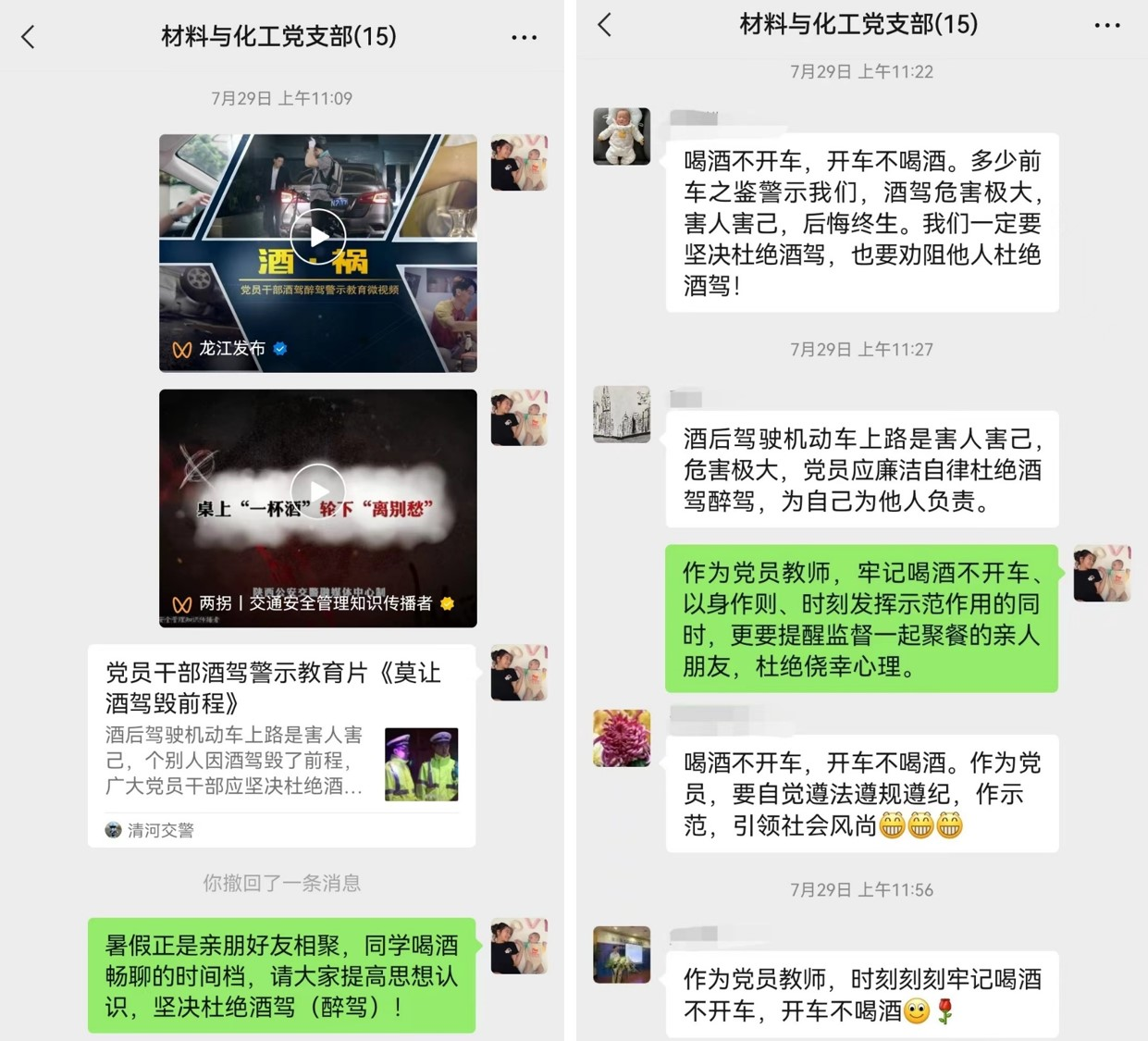 2023729日,材料与化工支部开展题为“党员干部职工酒驾警示教育的主题党日活动