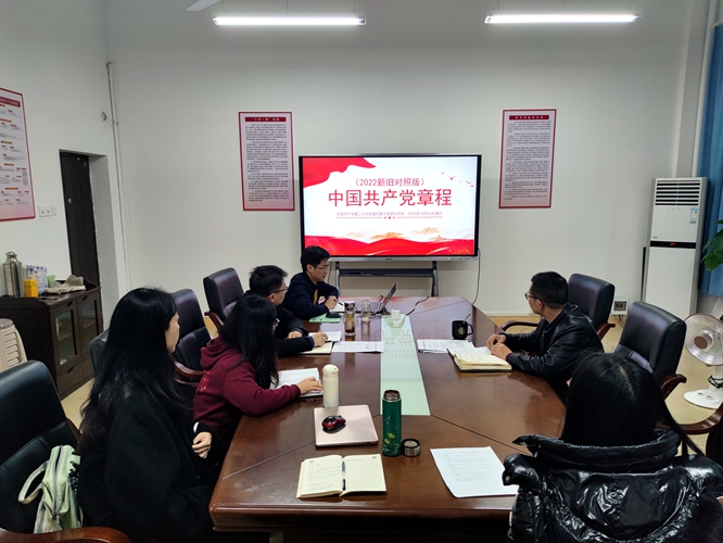 会上,学生党总支书记彭玉萌带领大家先后学习了《中国共产党纪律处分条例》(修订)、《党史学习教育工作条例》、《中国共产党巡视工作条例》(修订)、《中国共产党章程》及《中国共产党普通高等学校基层组织工作条例》。