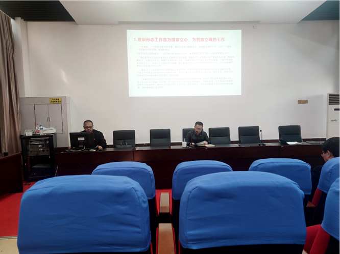 2023年3月14日14:30,学院在致学楼大会议室召开学院教职工大会,开展了3月份政治学习,院党委书记刘庆言带领全体教职工学习了习近平新时代意识形态重要论述有关内容。