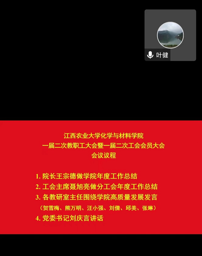 2022年12月30日9:00,今年会一届二次教职工代表大会暨一届二次工会会员代表大会在线上召开。学院全体教职工及全体工会会员参会,会议由学院党委副书记叶健主持。