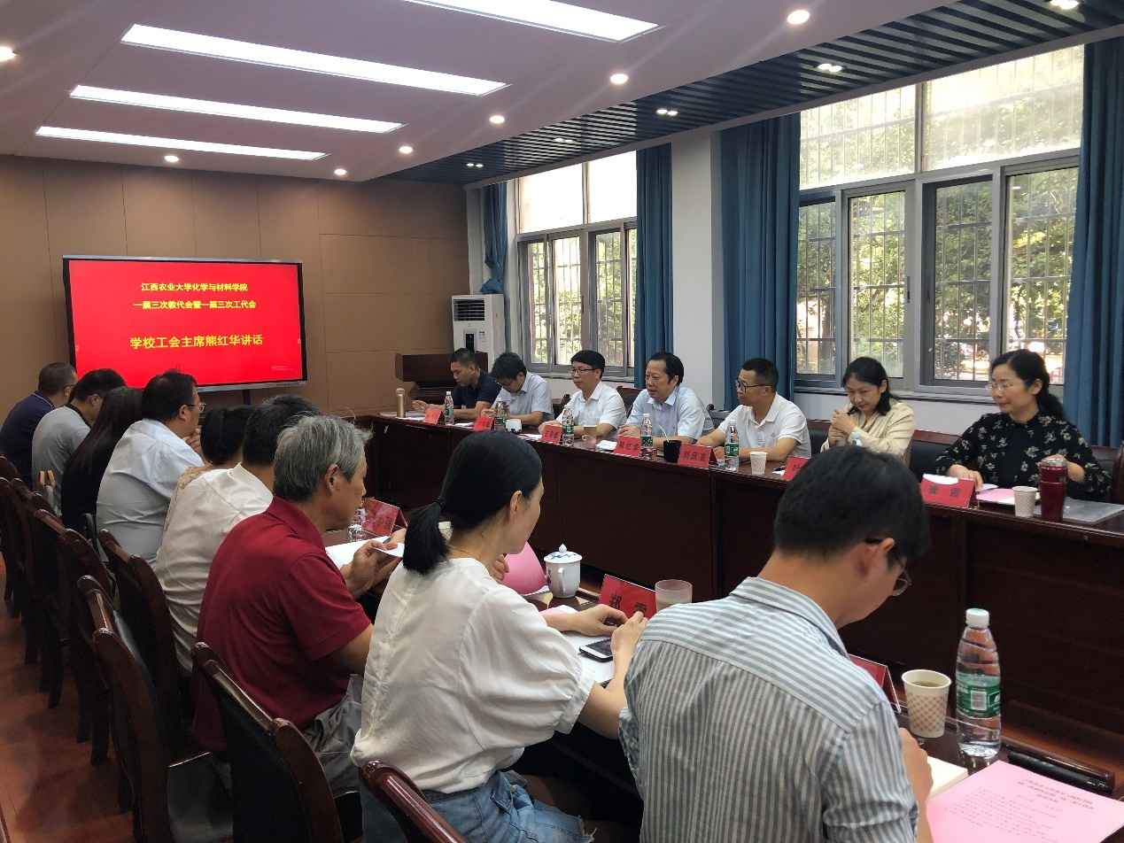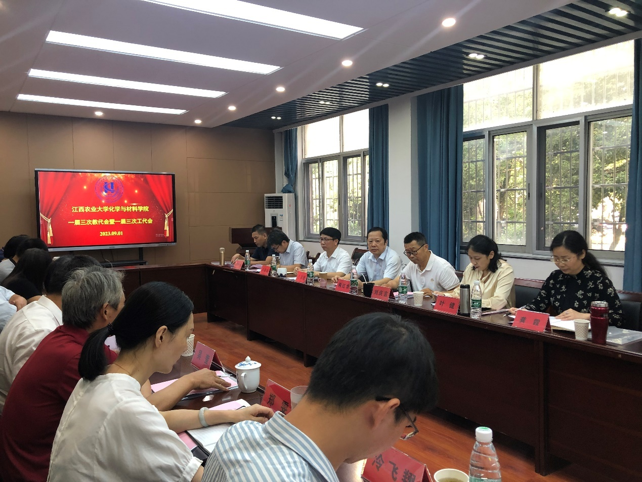 2023年9月1日9:00,今年会一届三次教代会暨一届三次工代会在化材学院214会议室召开。校工会主席熊红华、学院全体党政领导及全体教代会代表出席大会,会议由学院党委副书记叶健主持。
