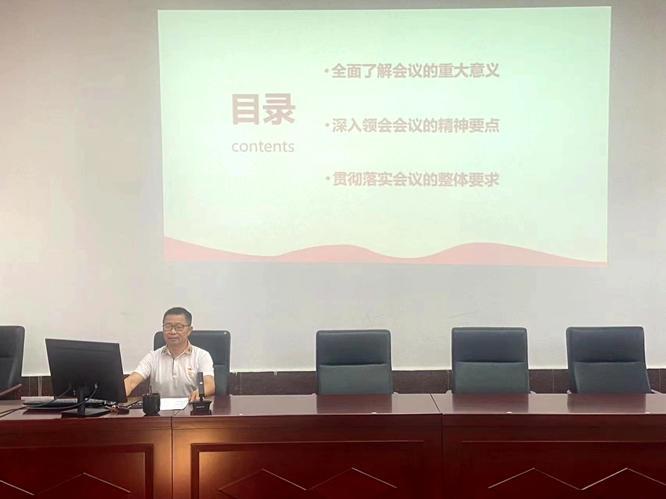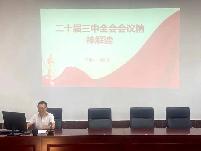 刘庆言以《党的二十届三中全会精神解读》为题,从“全面了解会议的重大意义”、“深入领会会议的精神要点”、“贯彻落实会议的整体要求”三个方面,深入细致地阐述了本次全会的六个方面的重要意义、八个层面的核心要点以及贯彻落实会议精神的三方面具体措施。