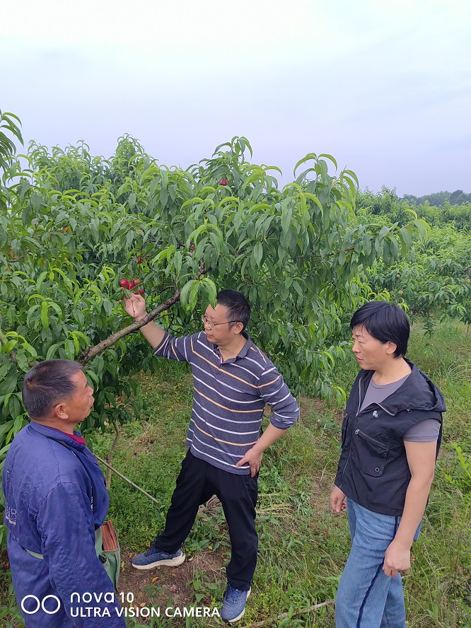 2024 年5月10日,应金溪县学员揭建芳的邀请,针对基地蜜橘和蜜梨种植土壤肥力下降、果子残渣多、甜度以及病虫害问题遇到的问题,化材院研究生支部黄喜根教授邀请农学院辜青青和林学院范国荣等教授到实地调研并取土样,提出明确建议和方法,基地负责人揭建芳对专家的服务非常满意。