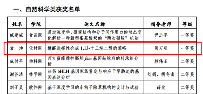 此外,根据《关于公布江西农业大学研究生第十六届“惟义”学术论坛获奖名单的通知》(赣农大研发〔2024〕53号),袁坤荣获第十六届“惟义”学术论坛(自科类)一等奖。
