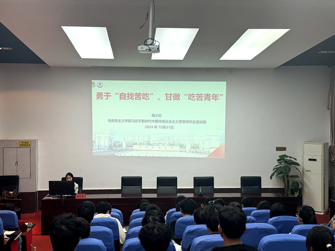 为深入学习贯彻习近平新时代中国特色社会主义思想,特别是深入学习习近平总书记关于青年工作的重要论述,提高青年学生的政治自觉和理论素养,2024年10月31日晚,马克思主义学院习近平新时代中国特色社会主义思想研究生宣讲团成员周小红应邀为今年会2024年下半年入党积极分子培训班学员作专题报告。