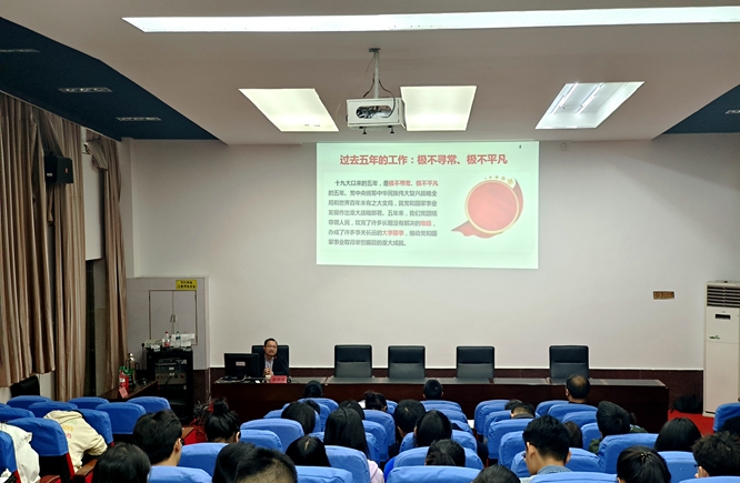 为进一步推进党的二十大精神宣传贯彻走深走实,202342315:20,学院邀请马克思主义学院博士宣讲团副团长潘锡杨博士为今年会全体师生党员作学习贯彻党的二十大精神专题辅导报告。支部全体党员现场聆听报告,报告会由学院党委副书记叶健主持。
