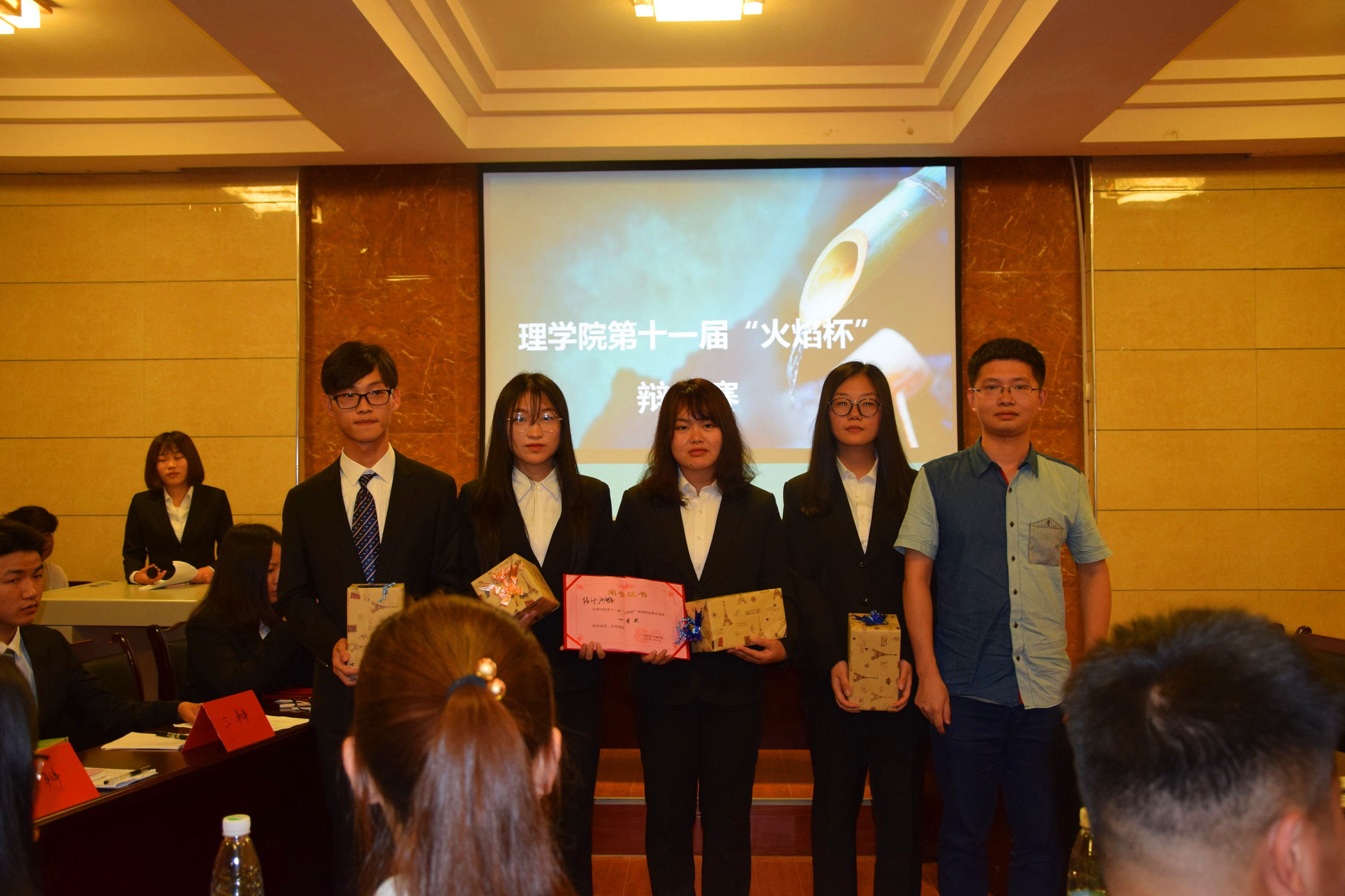 5月6日,今年会第十一届“火焰杯”辩论赛决赛在学校大学生活动中心402举行。经过前期预赛阶段的“车轮战”,信计1701班代表队与应化1701班代表队在决赛舞台相遇,双方围绕“生活更需要激情/理智”这一辩题展开激烈角逐,为现场的观众奉献了一场思维的盛宴。最终,信计1701班荣登冠军宝座,应化1703班王邦根获得“最佳辩手”称号,王邦根、郭伟敏、刘晓方及李平获得“优秀辩手”称号。