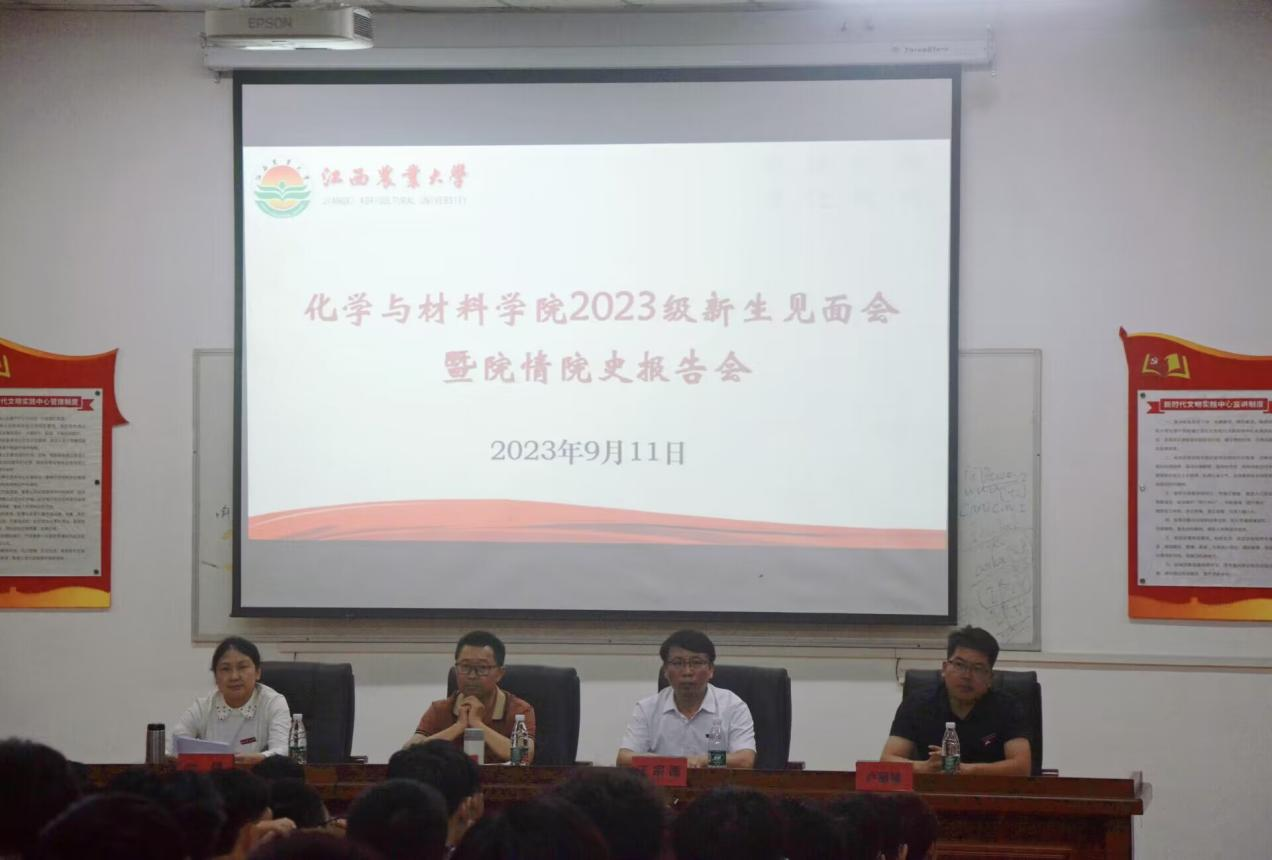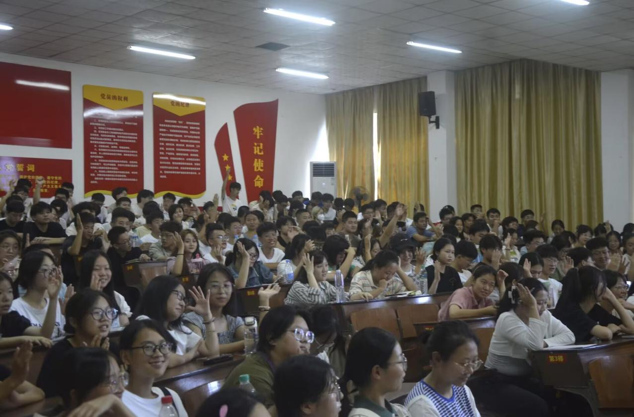 2023年9月11日晚7点,今年会在惟义楼党校教室隆重召开2023级新生见面会暨院情院史报告会,全体学院领导、系室主任、新生班主任、辅导员及233名新生参加大会。大会由院党委副书记叶健主持。