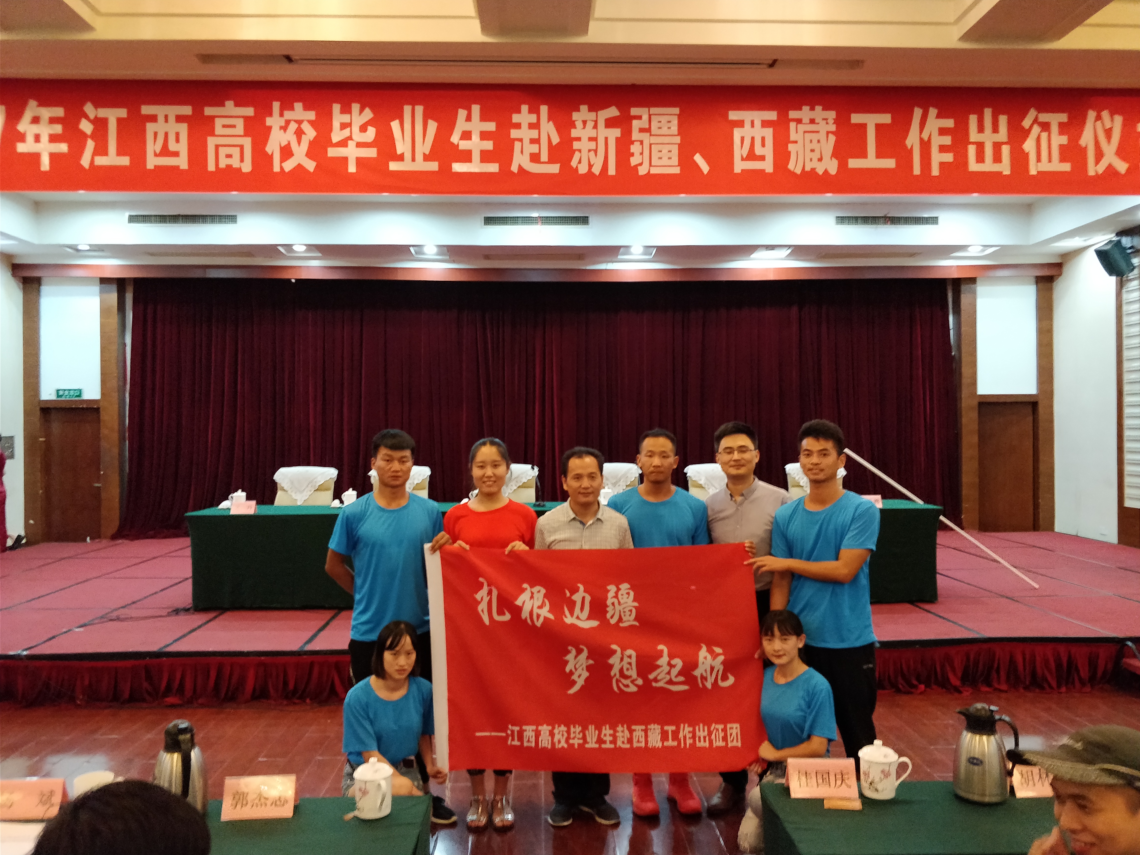 2017年7月30日,江西农业大学举行高校毕业生赴新疆、西藏工作出征仪式,后面左起第四位为郑凯元