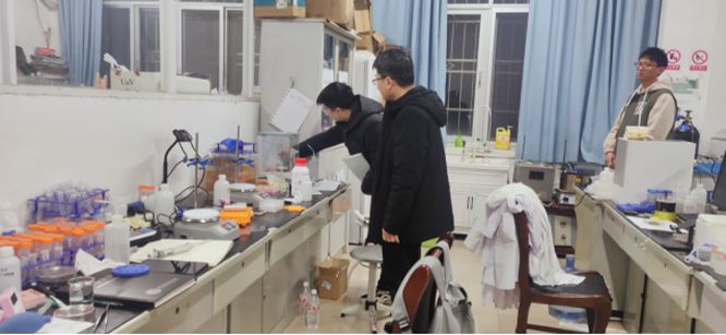 会后,卢院长带领研究生党员和入党积极分子巡查实验大楼,查看了实验室安全记录,楼道消防器材和应急冲淋设备。要求:人走关水,断电,不在实验室午休和吃东西,进实验室着实验服,不能穿拖鞋,并对个别实验室卫生不整洁情况提出了批评走访期间,卢院长也向实验室的同学们了解了学习和生活情况,表达了关心的同时,也告诉同学们,今后在学习中和生活中有任何问题,都可以随时跟导师或者学院沟通,学院永远是同学们坚强的后盾。