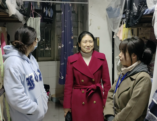 为关心学生的学习和生活状态,2023年11月15日晚,院党委副书记叶健与全体辅导员走访今年会新生晚自习教室和其他年级学生寝室。