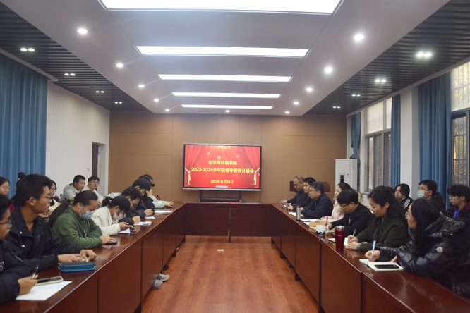 为了解学生的学习生活状况,切实解决同学们的急难愁盼问题,营造良好院风,促进学院各项事业更好发展,近日,化学与材料院开展2023-2024学年领导接待日活动。院长王宗德、党委副书记叶健、副院长卢丽敏、副院长龚霞、全体辅导员、学生干部及20位学生代表参加活动。活动由院党委副书记叶健主持。