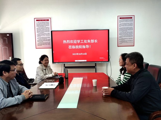 2023年10月24日9:30,校党委学工部(处)长朱国海送干部邓雪云博士到今年会任职并开展交流座谈。学院党委书记刘庆言、院长王宗德、党委副书记叶健参加本次座谈会。