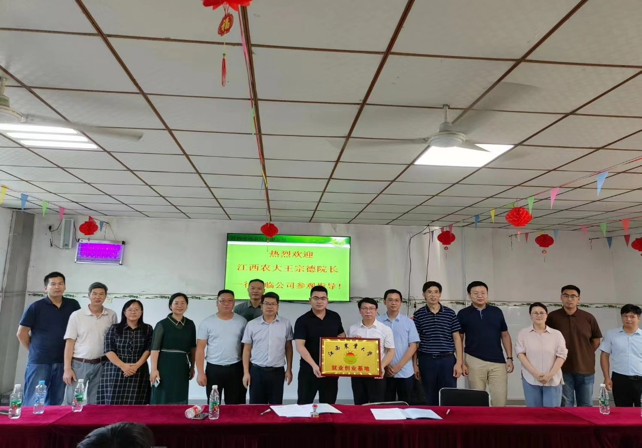 副院长卢丽敏代表学院与江西中迅农化有限公司签订“江西农业大学与用人单位共建毕业生就业创业基地合作意向书”和“科技合作协议”。院长王宗德为公司授牌“江西农业大学就业创业基地”。双方将充分发挥各自优势,在科学研究、技术应用、成果转化、实习实训等方面加强合作。
