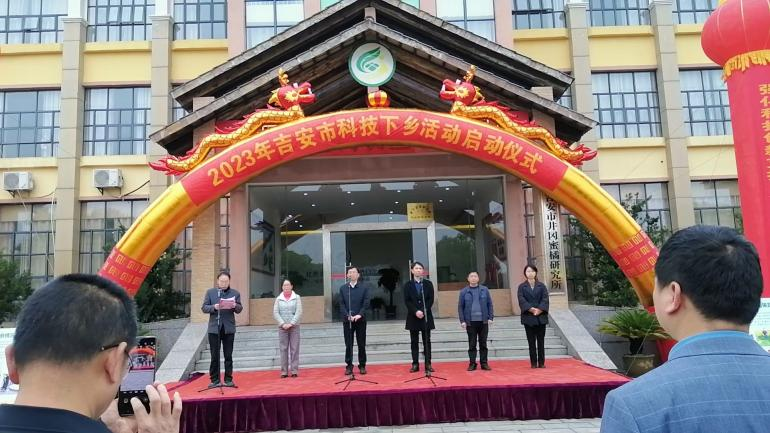 2023 年3月30日,吉安市科技局在新干召开2023 年度吉安市科技下乡活动启动会,新干县人民政府副县长杨成奎同志致辞,省农业科学院蔬菜花卉研究所周劲松、江西腊月红生态果业有限公司负责人聂雄辉分别做了典型发言,市科技局副局长周俊才同志宣布活动启动,参加此次活动的科技人员和农户有200余人,启动会后今年会黄喜根教授、彭大勇和黄建平博士分别到基地调研和指导。