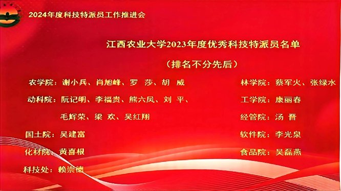 2024411,江西农业大学召开2024年度全校科技特派员工作推进会及2023年度优秀科技特派员表彰大会,100余名专家参加会议。