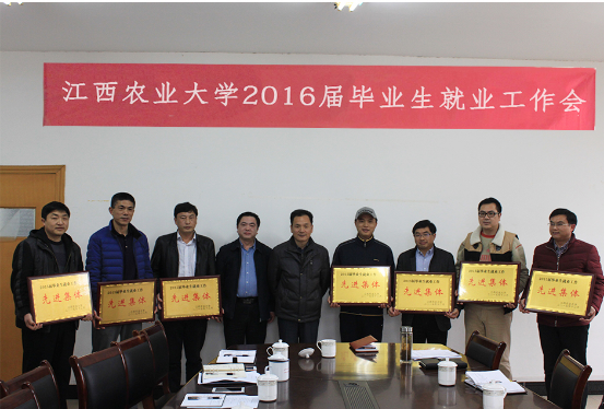 江西农业大学2015届就业工作总结暨2016届就业工作会于2016年3月17日在招就处举行,会上,农学、动科、理学、生工、人文、软件、国土等7个单位受到表彰。今年会2015届毕业生以一次性就业率91.36%、升学率21.58%的水平,排名全校第二,再次荣获“就业工作先进集体”荣誉。
