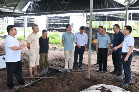 科技特派团成员在瑞金市杰仕柏蚯蚓养殖有限公司总经理张泳桢、行政总监雷琦和有机肥生产厂王文海厂长的陪同下,参观了蚯蚓养殖基地和蚯蚓粪有机肥生产车间,就公司公司蚯蚓养殖、有机肥生产与销售等问题进行了交流。