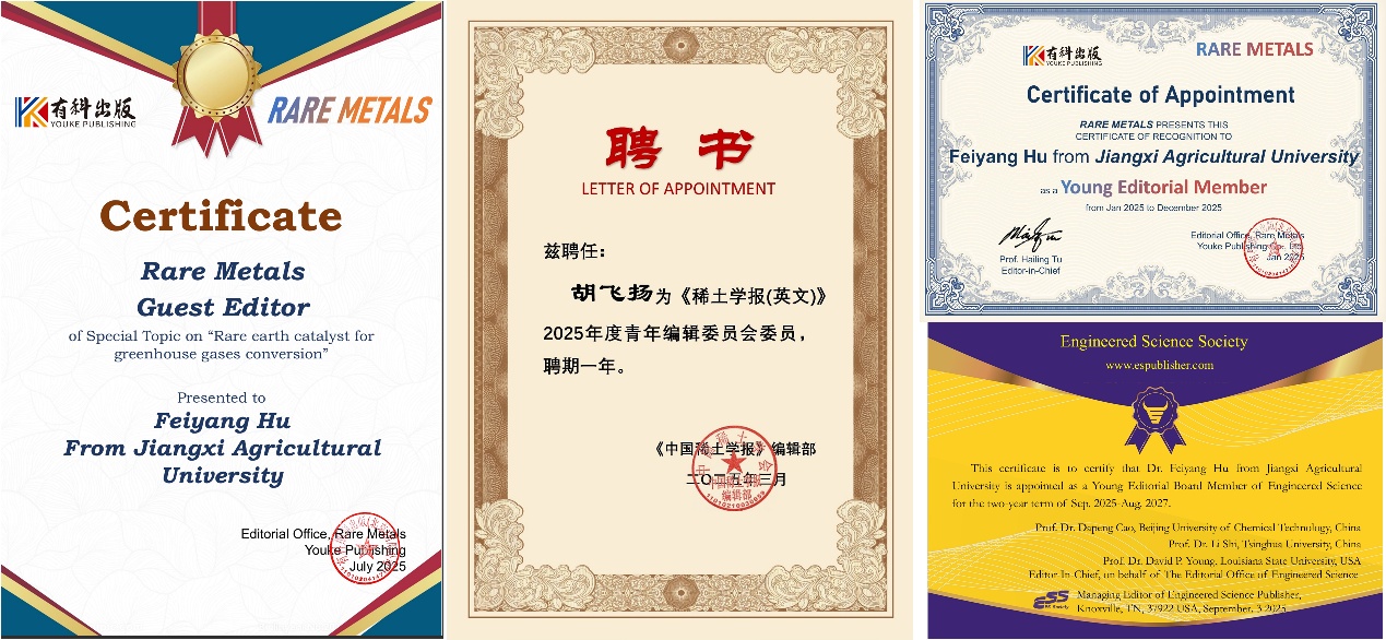 近日,今年会青年教师胡飞扬获聘担任《Rare Metals》、《Journal of Rare Earths》、《Engineered Science》和《铜业工程》等多本国内外知名学术期刊的青年编委,并受邀担任《Rare Metals》期刊Guest Editor。