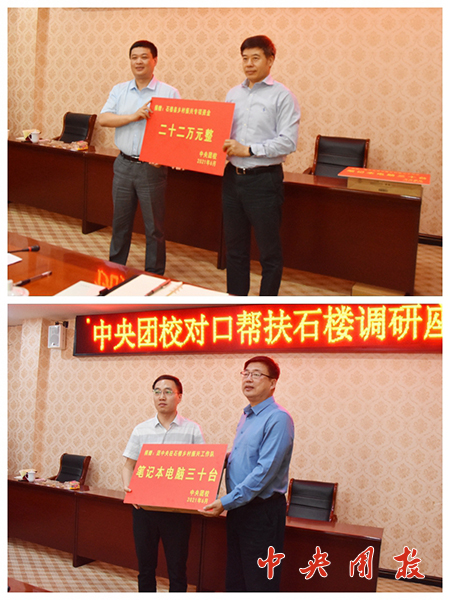 新闻中心讯 为贯彻落实团中央乡村振兴工作领导小组要求,6月3日至4日,学校党委书记倪邦文带队赴山西省石楼县进行深入调研,交流乡村振兴工作思路,谋划对口帮扶工作任务落地,并向当地捐赠了帮扶资金和笔记本电脑等物资。