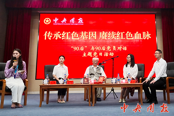7月2日,离退休党总支和轮训部党总支联合举办了一场别开生面的“90后”与90后对话主题党日活动。原团中央青运史研究室副主任、团中央青运史工作指导委员会副主任郑洸,与2021年度基层组织团干部进修班(第5期)学员临时党支部的90后党员代表王振、尚格格,轮训部党支部90后党员代表冯乐,围绕“忆初心”、“励青年”、“畅未来”三个主题开展对话交流。郑洸同志讲述了自己的入党经历和一生践行“对党忠诚、遵守纪律、服从组织、努力工作、永不叛党”誓词的过程,分享了“绝对服从组织安排,把一切交给国家”的人生格言。校党委常委、副校长林江出席活动,离退休党总支和轮训部党总支负责同志以及110名90后青年党员参加活动。