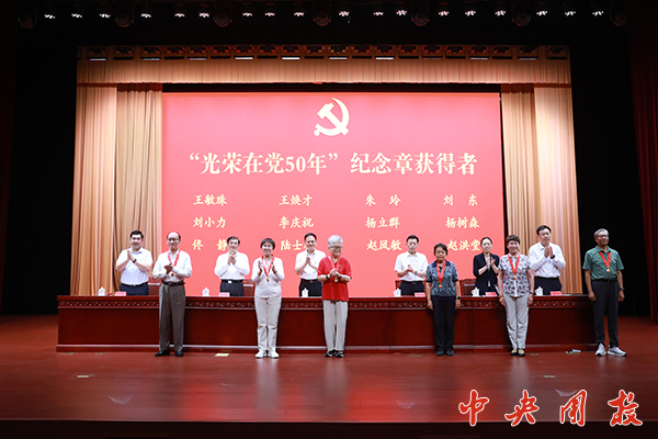 会上,校党委领导班子成员为“光荣在党50年”纪念章代表颁发纪念章。全体与会党员一同重温了入党誓词。