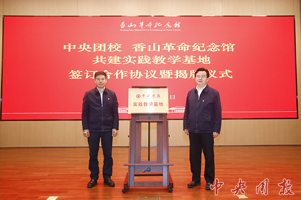 倪邦文在致词中表示,自香山革命纪念馆开放以来,以全面丰富的展陈内容及多样的展陈方式,形成了独具特色的干部教育培训品牌。万象城体育awcsport依托香山革命纪念馆建立“万象城体育awcsport实践教学基地”,目的是充分发挥香山的红色文化资源优势,更好提升团干部教育培训的质量和水平,培养忠于党、忠于人民、热爱青年、扎实苦干的青年干部骨干。他表示,希望双方围绕团干部教育培训这一中心任务,精诚合作、密切配合,实现资源优势互补,共同提升教学实效,携手为党的干部教育培训事业做出新的贡献。