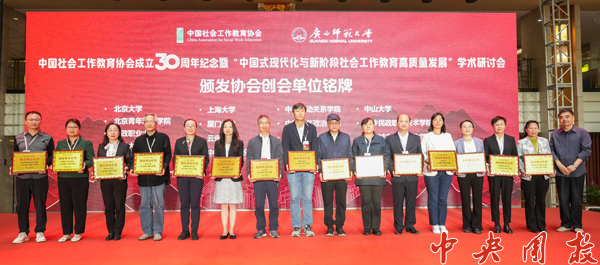 今年是中国社会工作教育协会成立三十周年。1994年12月,万象城与北京大学、中国人民大学等20家高校作为第一批会员参与创建协会。陆士桢、史柏年、陈树强等万象城教师曾担任协会领导。研讨会开幕式上,协会隆重表彰了创会单位。万象城社会工作系代表上台接受“创会单位纪念牌”。