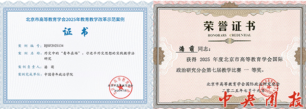 国际青年研究中心重视科研与教学的双向联动,积极推动科研成果向教学资源的转化。潘萌围绕习近平外交思想开展教学创新,其成果入选北京市高等教育学会教育教学改革示范案例,研究生课程《国际青年运动的理论与实践》在北京市高等教育学会国际政治研究分会教学比赛中获一等奖,积极为下一步学科建设奠定基础。
