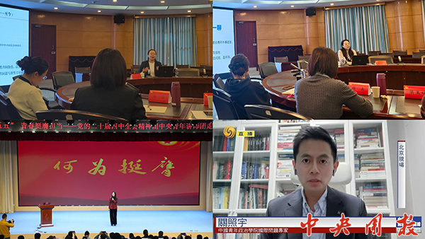 同时,积极支持地方团校建设,主动传播国际青年研究温度。受广西团校邀请,任广旭、潘萌为广西团校“2025年构建更加紧密的中国东盟命运共同体培训班”开展《党领导下的青年对外交往历程》《区域国别调查研究方法》专题授课。张泽芳作为团中央青年讲师团成员,赴重庆、陕西等地,围绕党的二十届四中全会精神开展专题宣讲,推动研究成果向青年工作一线延伸。此外,关照宇等接受凤凰卫视、《中国青年报》等媒体采访20余次,提升了国际青年研究中心的社会可见度和公共影响力。