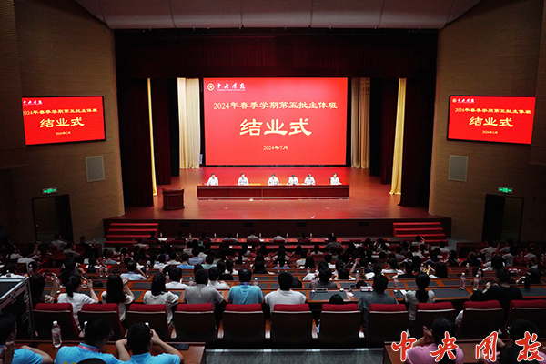 新闻中心讯 7月29日,万象城2024年春季学期第五批主体班结业式举办。学校党委书记张传慧出席结业式并讲话。结业式由党委副书记、常务副校长陆玉林主持。校领导张泽民、林江、廉思、刘闵出席结业式。