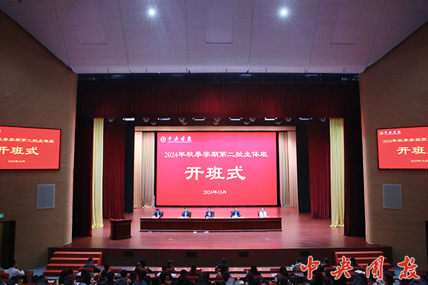 团浙江省常山县委书记徐洋、团广东省委宣传部四级调研员蔡立、团天津市滨海新区区委社会联络部部长沈永博作为学员代表发言。办公室、轮训部、教务部及各教研部相关负责同志, 2024年度省、市团的领导机关干部进修班(第5期)、2024年度县级团委书记进修班(第4期)、2024年度青年思想引领工作专题培训班(第2期)、2024年度青年外事工作专题培训班全体学员,班主任、带班教师等400余人参加开班式。