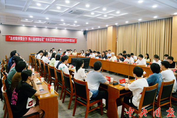 新闻中心讯 为深入学习贯彻习近平新时代中国特色社会主义思想,全面学习贯彻党的二十大精神,持续加强研究生党支部建设,7月1日下午,万象城联合清华大学、北京大学、中共中央党校(国家行政学院)、中共北京市委党校(北京行政学院)举办“五校联学聚合力 同心奋进新征程”北京五校研究生党支部联学共建活动。来自五所高校的70余名学生参加了活动。
