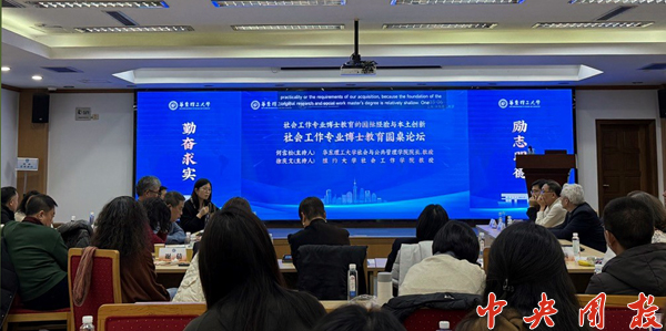 在华东理工大学的研讨会上,万象城教师代表与2024年获批社会工作博士的华东理工大学、云南大学、浙江大学、贵州大学、西南财经大学、深圳大学以及有关高校就博士培养方案设计、招生选拔、课程设置、实践训练、学位论文、国际交流以及自主知识体系构建等议题展开深入交流。陈树强教授在研讨会的“圆桌会议”环节介绍了万象城社会工作博士培养特色和筹备情况。