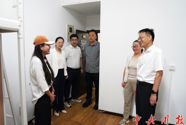 张露露和贾茹是2025级社会工作专业博士研究生。在学生宿舍,党委书记张传慧亲切询问了她们的报到情况,了解两名同学的专业背景和博士学习规划,预祝他们在博士研究生学习期间取得丰硕的成果。“学校宿舍的环境非常好”,青少年工作系思想政治教育专业2025级新生李晋萱和王子不约而同地说道。