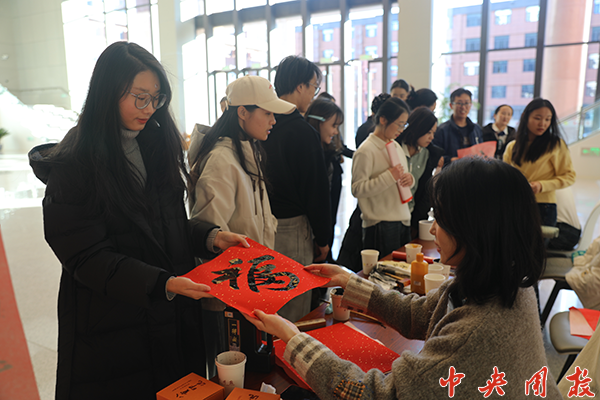 活动开始前,求是讲堂活动吸引了众多师生驻足。同学们挥毫泼墨,将“马到成功”“学业有成”等美好期许倾注笔端,以笔墨传递真挚祝福,为校园营造出浓厚温馨的节日氛围。