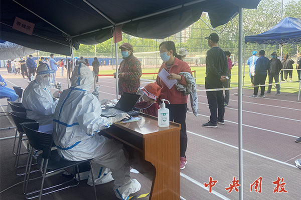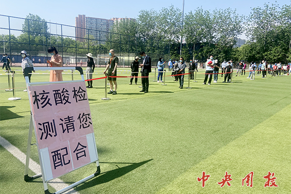 新闻中心讯(王娟) 5月3日上午,教职工和社区居民在万叶体育场进行了集中核酸检测筛查。这是5月1日以来,学校开展的第二次集中核酸检测筛查。之前,学校已按照北京市疫情防控工作领导小组统一部署,于4月26日、28日、30日组织开展了三轮核酸检测筛查。