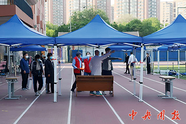 这一天,学校按照北京市统一部署,开展了5月1日以来的第3次集中核酸检测。那一群年轻的身影,忙碌在疫情防控第一线。