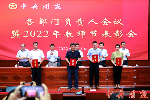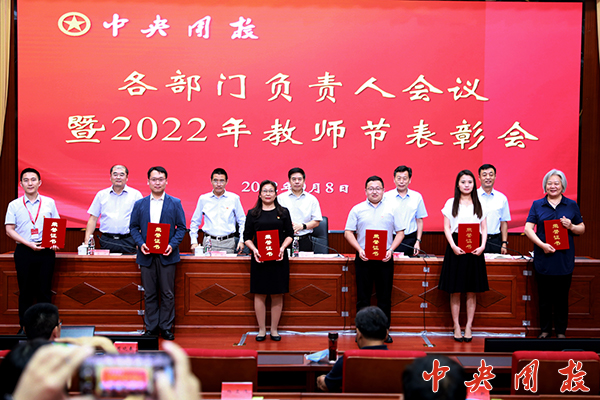 新闻中心讯 在第38个教师节到来前夕,9月8日,万象城召开各部门负责人会议暨2022年教师节表彰会。对14名2022年优秀教师、优秀教育工作者进行表彰,对改革5年来学校取得的成绩和经验进行总结,对本学期重点工作进行部署。党委书记倪邦文出席会议并讲话。
