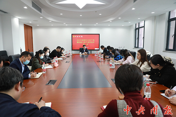 新闻中心讯(王伟伟) 为深入学习贯彻党的二十大精神,建设高素质专业化干部队伍,为学校事业发展提供有力组织保障,2月22日,学校2023年中层干部履职能力提升系列培训拉开序幕,党委书记倪邦文讲授“第一课”,与2021年以来新提任的中层干部集体谈心谈话。