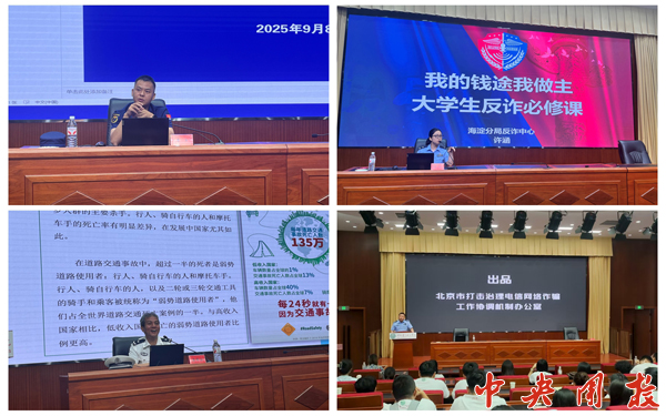 消防安全培训。海淀区万柳消防救援站副站长李多警官围绕疏散逃生、火灾处置、消防器材使用等内容进行了系统讲解,并结合典型案例进行深入分析,有效增强了同学们的消防安全意识与自救逃生能力。反诈安全培训。海淀分局反诈中心许涵警官剖析了当前高发电信诈骗手法、潜在危害及防范措施,帮助同学们识诈、防诈,提升个人财产与人身安全的保护能力。交通安全培训。海淀区高等院校交通安全工作部门联席会办公室主任李希宝警官通过系列交通事故案例,阐释了“交通安全无小事”的重要性,并特别提醒同学们在步行、骑行过程中要严格遵守交通法规,时刻保持警惕,全面提升交通安全意识与事故防范能力。组织集体观看反诈微电影《心防》。该片以真实案例为蓝本,通过情景化模拟方式形象地展示了各类诈骗手段及过程,进一步强化了同学们的反诈意识。属地万寿寺派出所相关负责同志也到场参与了本次观影活动。