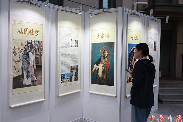 现场展出了梅派经典戏服、盔头等实物展品,让观众近距离感受传统戏曲服饰的精美工艺与文化内涵。同时,大阶梯教室外,布置了“相遇梅兰芳”主题特展,以图文方式展示了梅兰芳先生的生平事迹与梅派艺术的发展脉络。