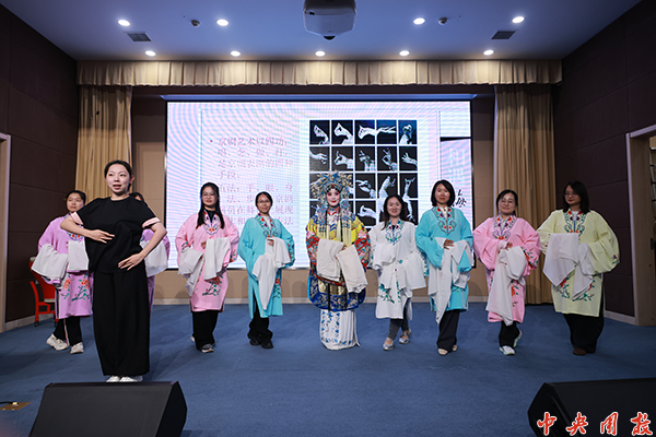 在互动环节,学员师生们踊跃上台,体验水袖服饰,学习“上马”、“枪花”等京剧动作,感受京剧艺术的独特魅力,让传统文化在沉浸式体验中焕发新生。